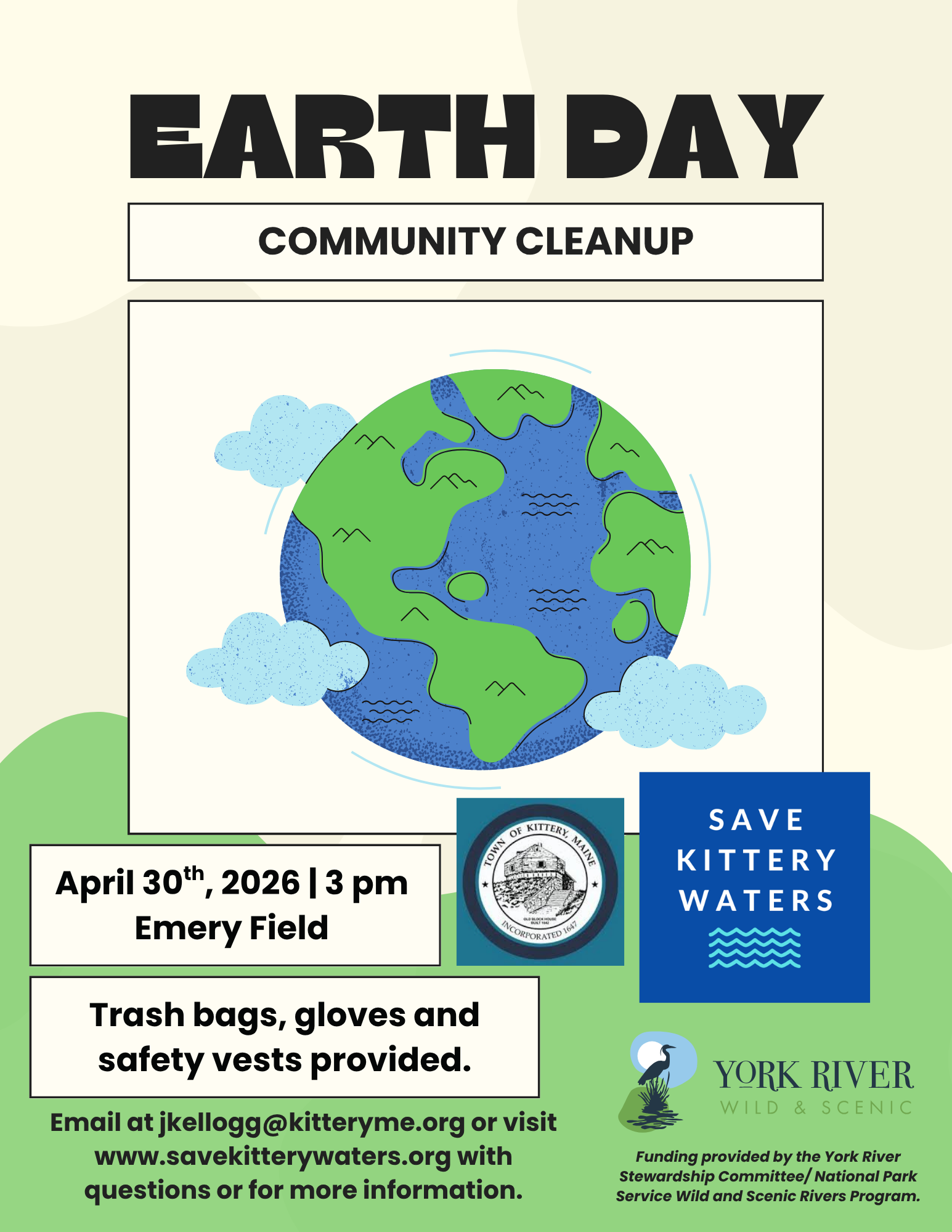 Save Kittery Waters is partnering with the Town of Kittery for a Community Cleanup, in celebration of Earth Day. We will start at Emery Field and work our way through Admiralty Village. This is a great way to get to know your neighbors, take care of our beautiful town, or get those community service hours.