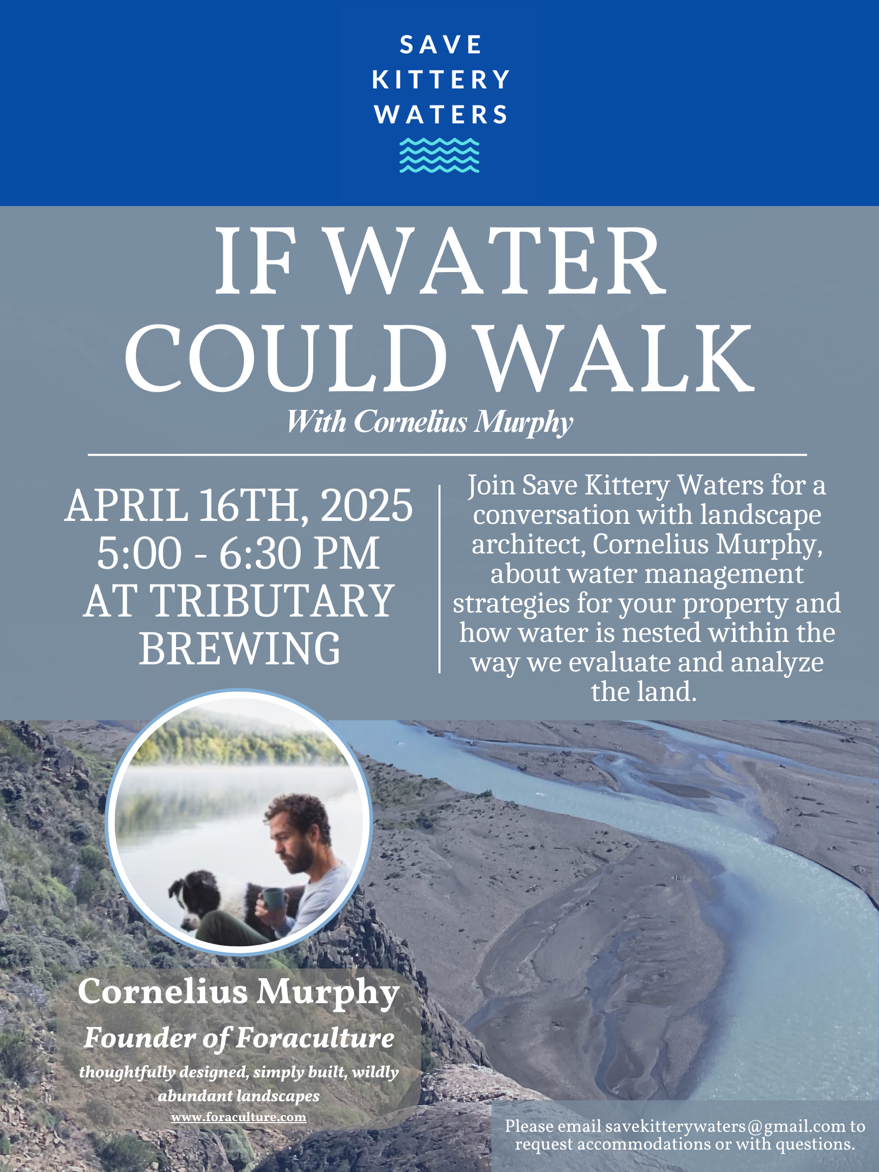 Join Save Kittery Waters for a conversation with landscape architect, Cornelius Murphy, about water management strategies for your property and how water is nested within the way we evaluate and analyze the land.